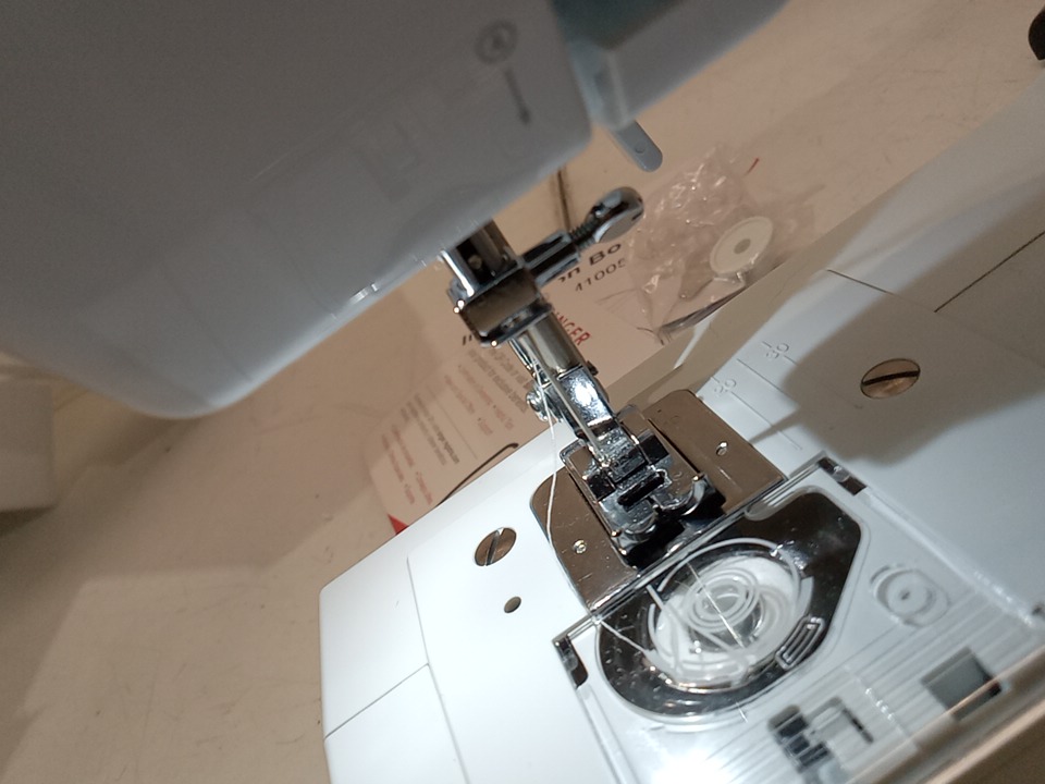 Has some white thread already through the needle