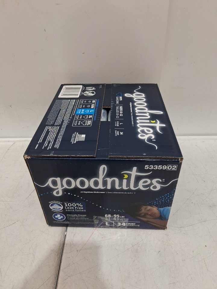 34PK BOYS GOODNITES NIGHTTIME UNDERWEAR - LARGE (68-95LB)