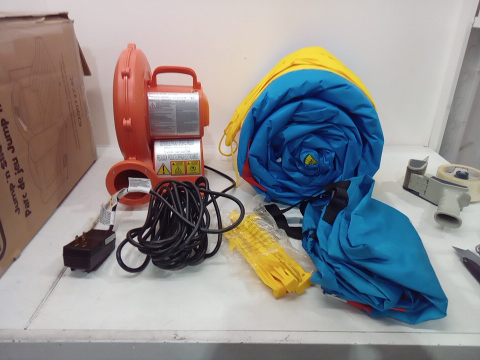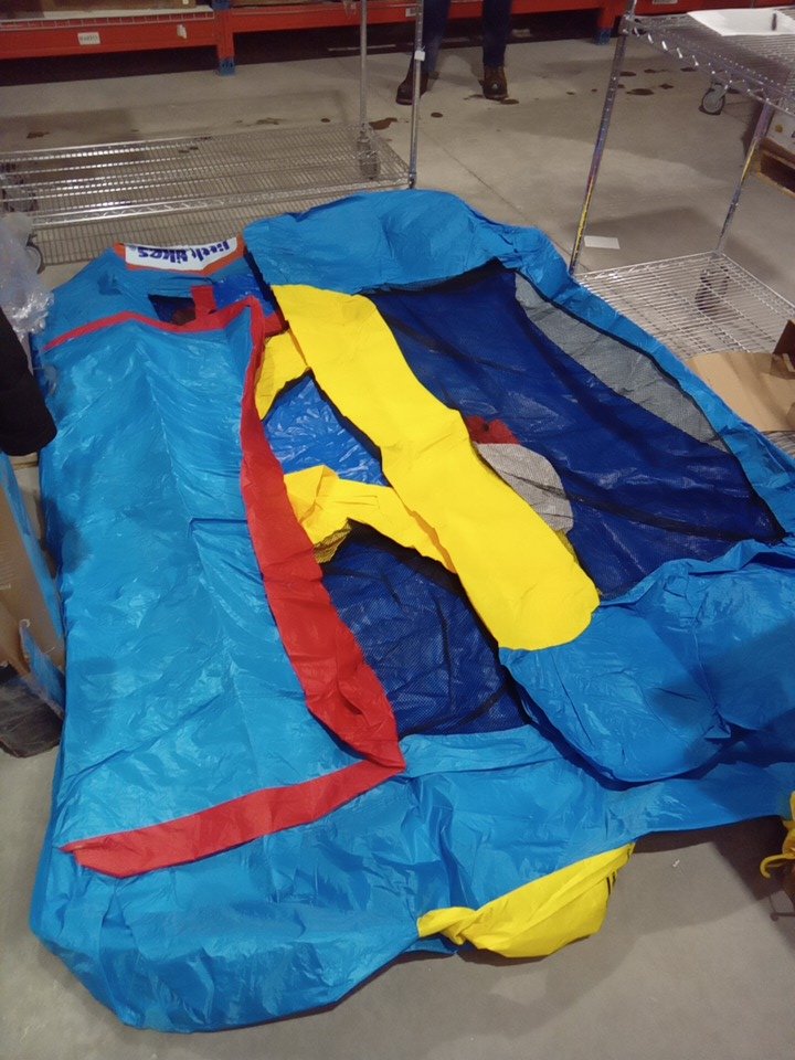 there is minor staining on the jump n slide due to being previously used. see photos. also dirt from warehouse.