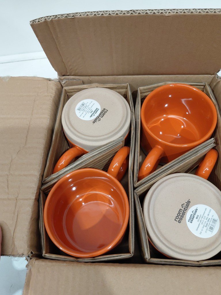 4 ROOM ESSENTIALS CERAMIC STONEWARE MUG - 17OZ - WAVY GLAZE orange/TAN