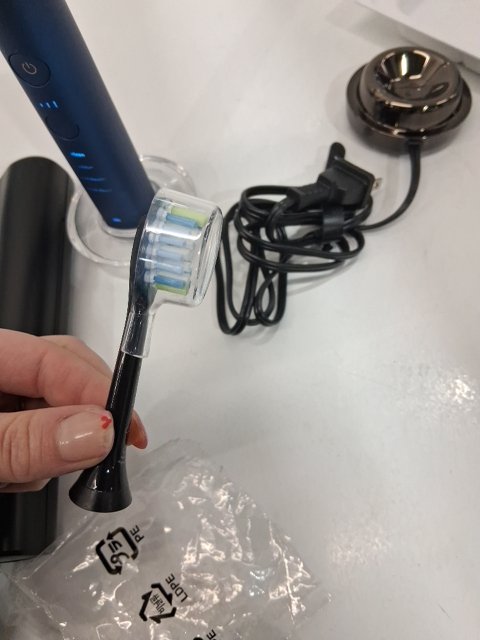 There is a bit of toothpaste residue on the brush handle and one of the included brush heads came opened. We recommend doing a personal clean of this item before use. tested for power