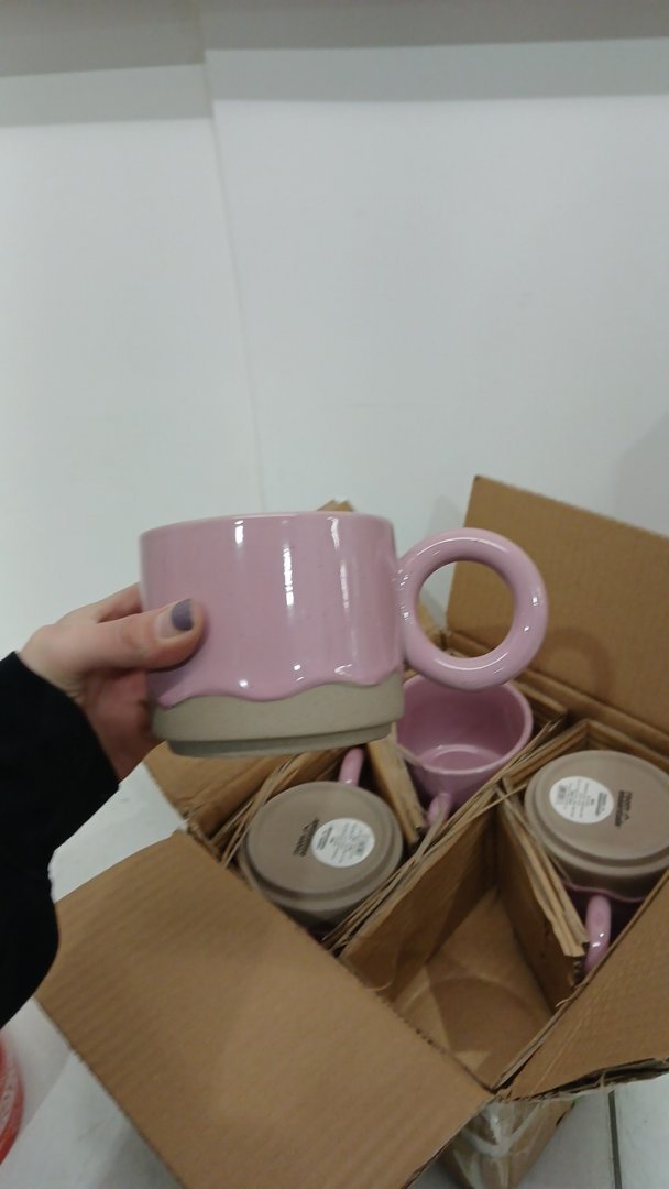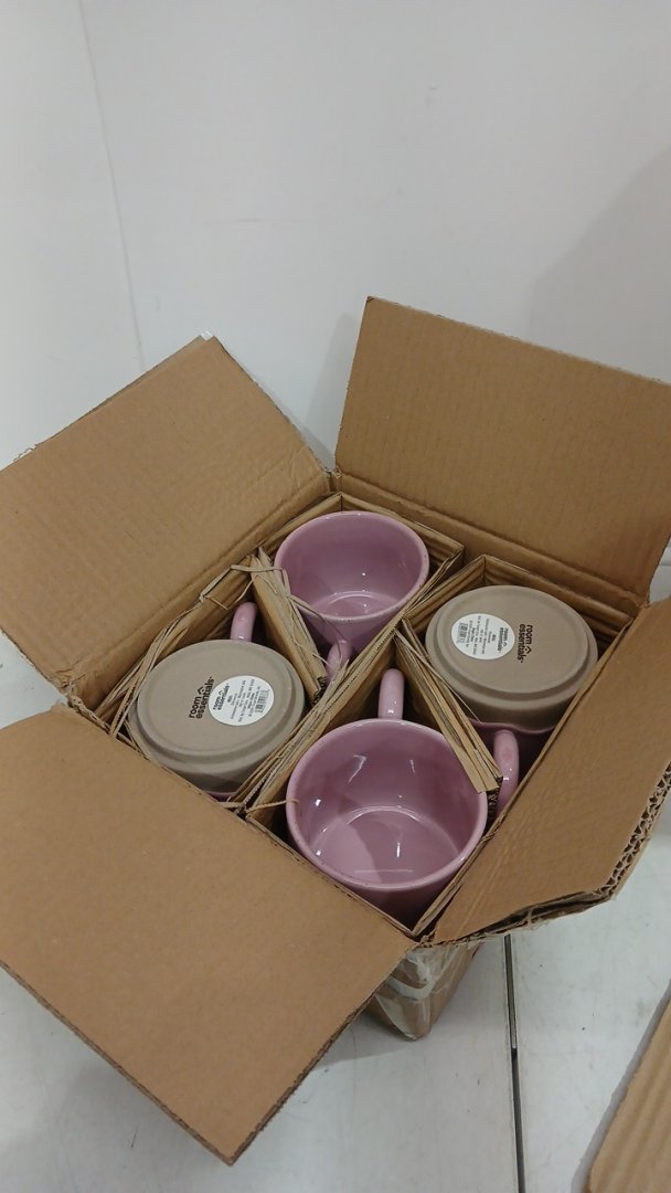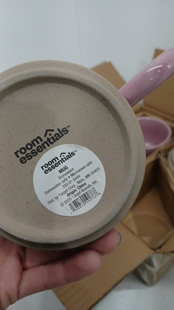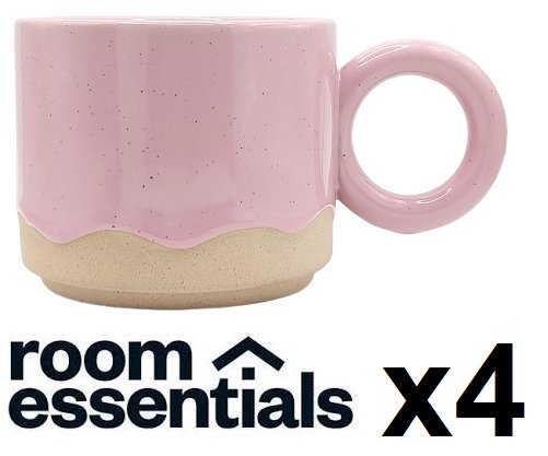 4 ROOM ESSENTIALS CERAMIC STONEWARE MUG - 17OZ - WAVY GLAZE pink/TAN