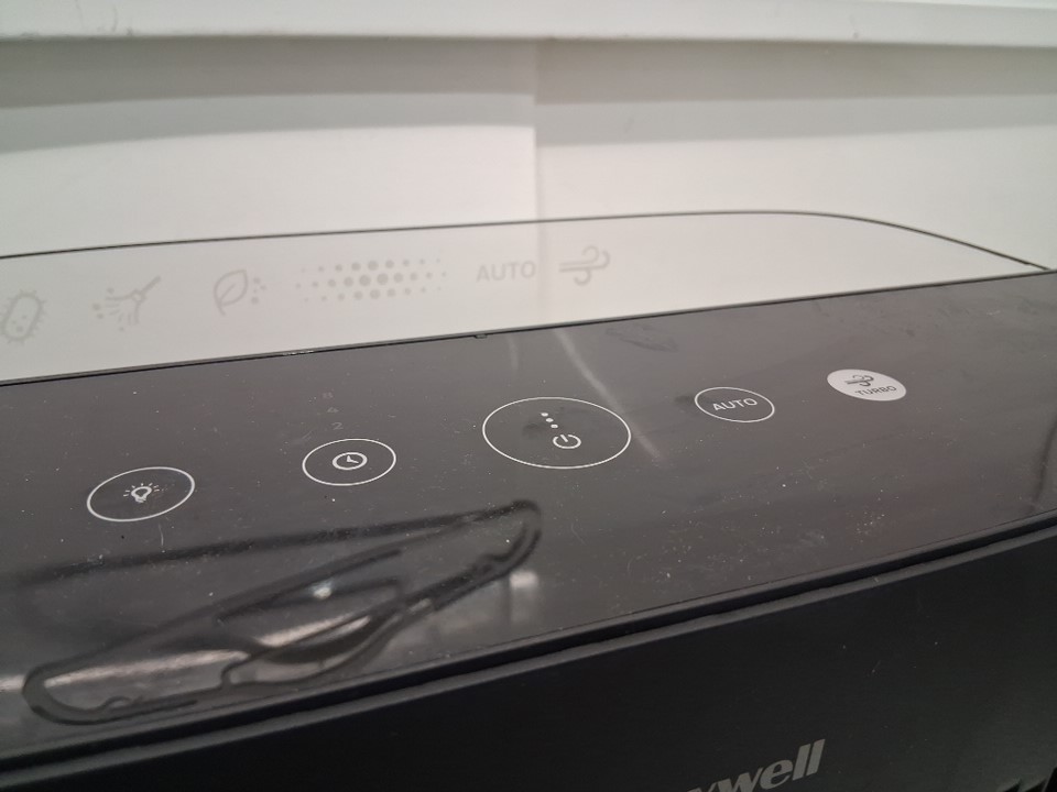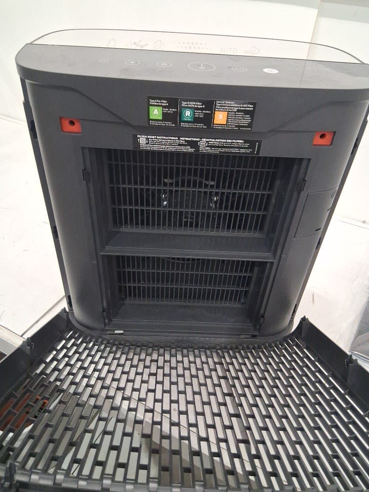 Top of air purifier has smudges and residue on it, sides have light scuffing. Filters are still new and sealed