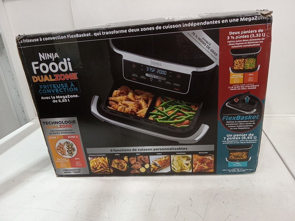 Food debris/grease on/in the baskets and air fyer from previous sue, can likely be cleaned. tested for power only.