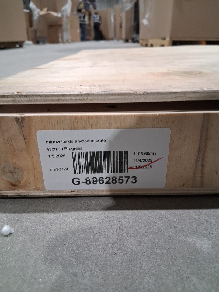 product came to us in a wooden crate which was then unscrewed to be inspected for size and condition. upon inspection the crate was then Screwed back as close to how it originally came to our warehouse.