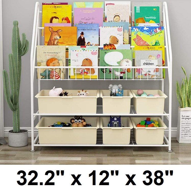 hossejoy metal bookshelf - 32.2" x 12" x 38" - white (model: ‎HJ-US-5CCSJ-0209-2)