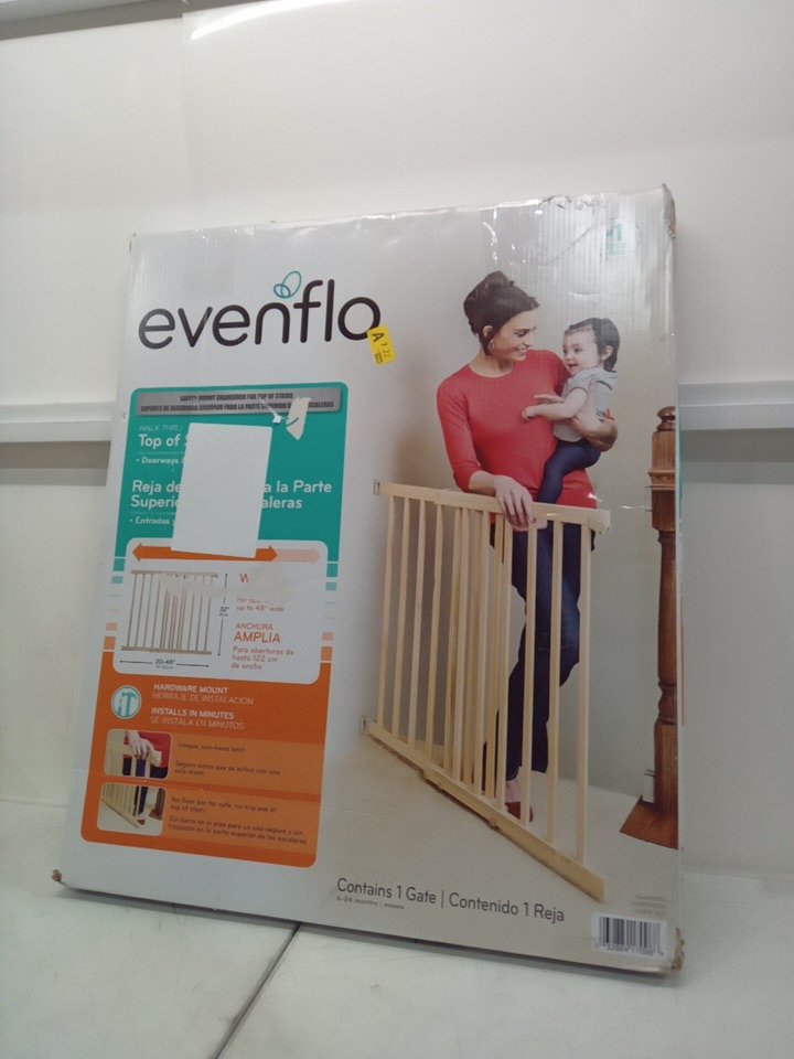 EVENFLO WALK-THRU TOP OF STAIRS extra wide BABY and PET GATE - 32" x 30" - 48" - NATURAL WOOD brown (MODEL: 1050)