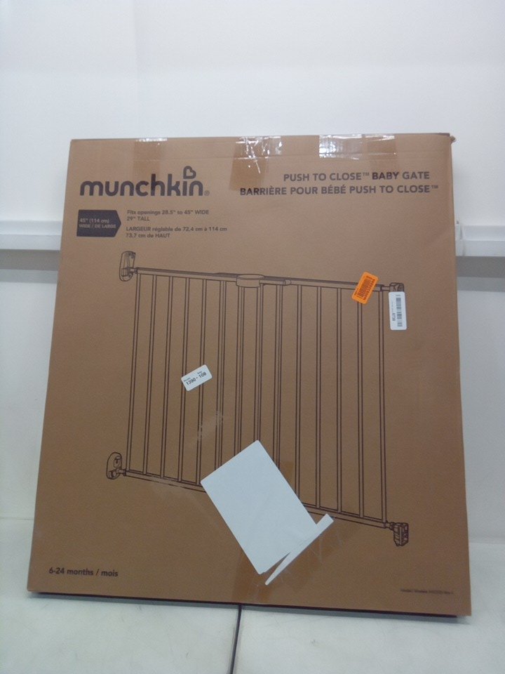 MUNCHKIN PUSH TO CLOSE BABY GATE FOR STAIRS WITH HARDWARE - 27" x 30.5" x 2.25" - BLACK - (MODEL: 46777001-SIOC)