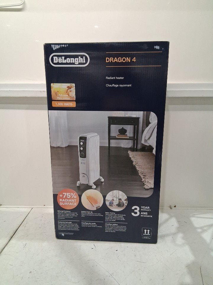 delonghi dragon full-room radiant space heater - 144sq.ft coverage - 1500w - white (model: trd40615tca)