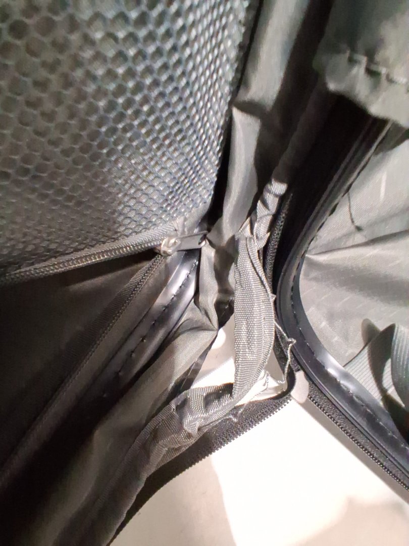 Signs of use due to dust, debris and marks. Sewing of one of the zippers is damaged and needs to be addressed.