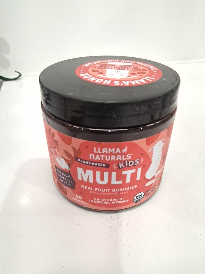 (90 gummies) llama naturals plant-based real fruit gummy multi-vitamins for kids - strawberry strawberrylicious