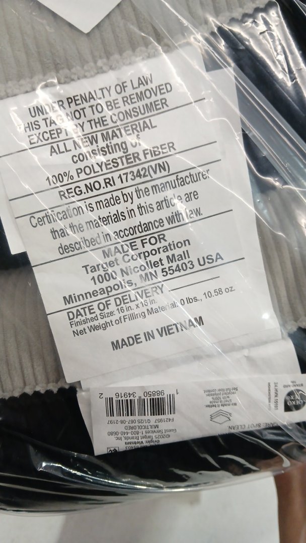 4 Room Essentials Corduroy Collection Square Throw Pillow - 16" X 16" - BLACK/GREY