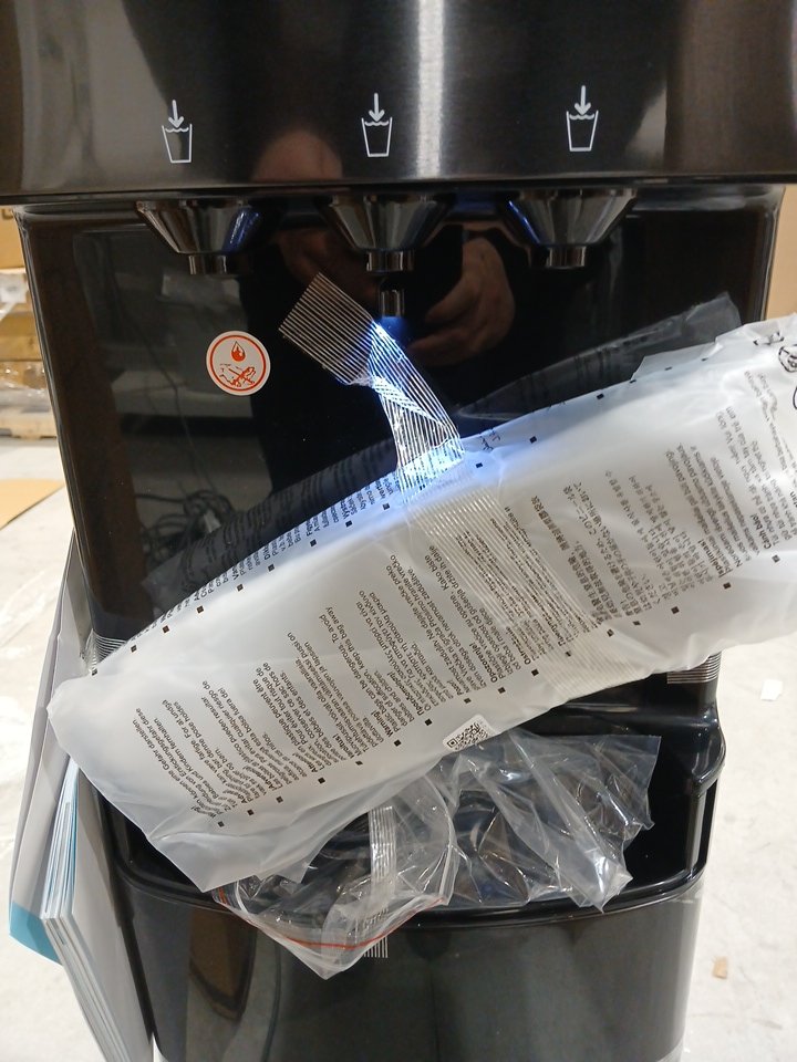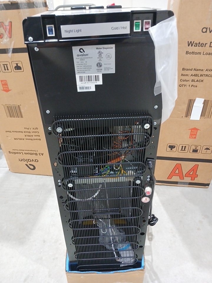 Water jug sold separately. The top corner is damaged. This item has been tested for power