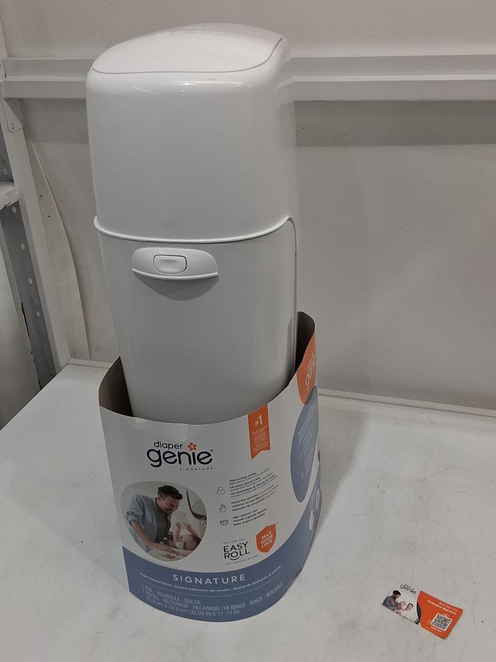 Item has minor dust/debris internally from previous gentle use, see photos. Item's lid is missing one of its nubs to hold it in place, does not include any refill bags, see photos.
