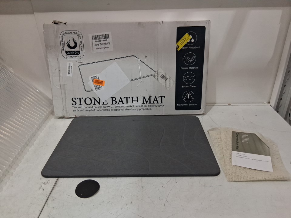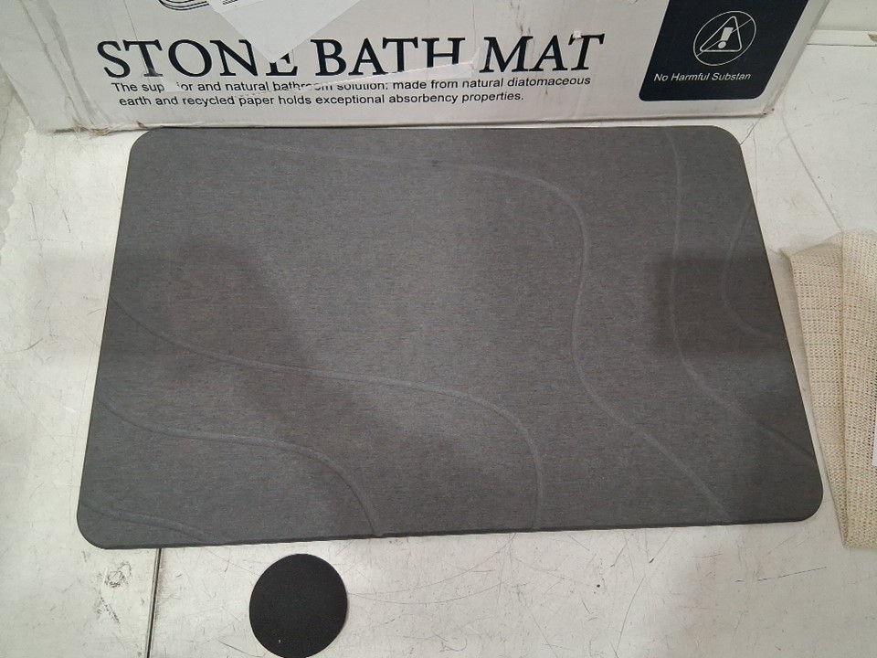natural Diatomite non-slip stone bath mat - 23.7" x 15.4" x 0.3" - grey