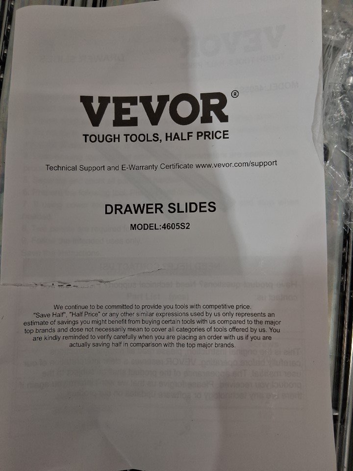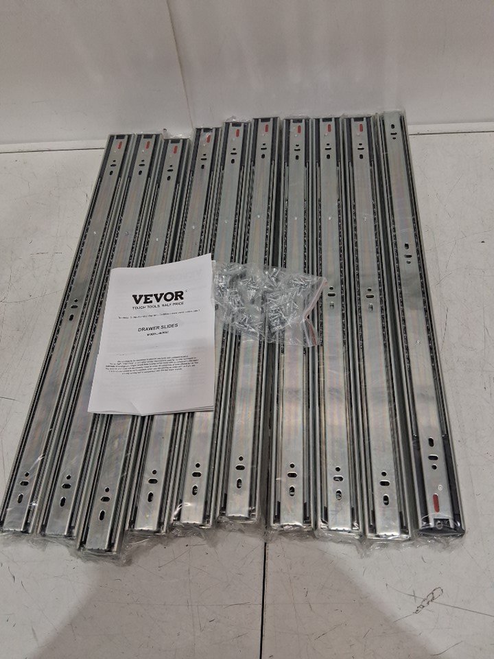 10PK vevor heavy duty drawer slides with soft close - 24" - 100lb max load - silver (model: 4605s2.600-10)
