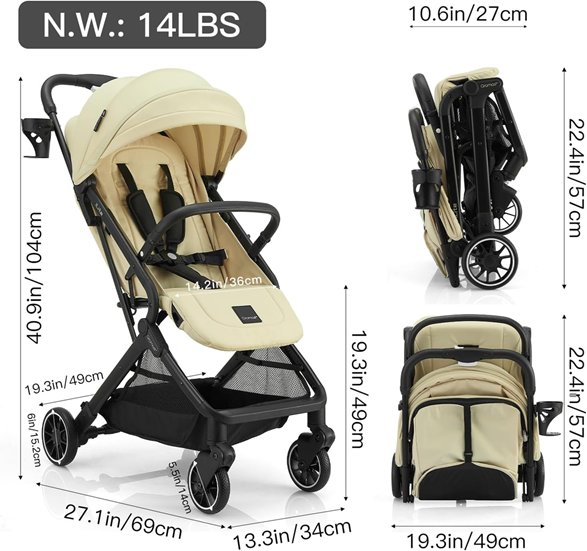 GROMAST ilite compact lightweight travel stroller - 40'' x 27'' x 13'' - beige/black (Model : A1)