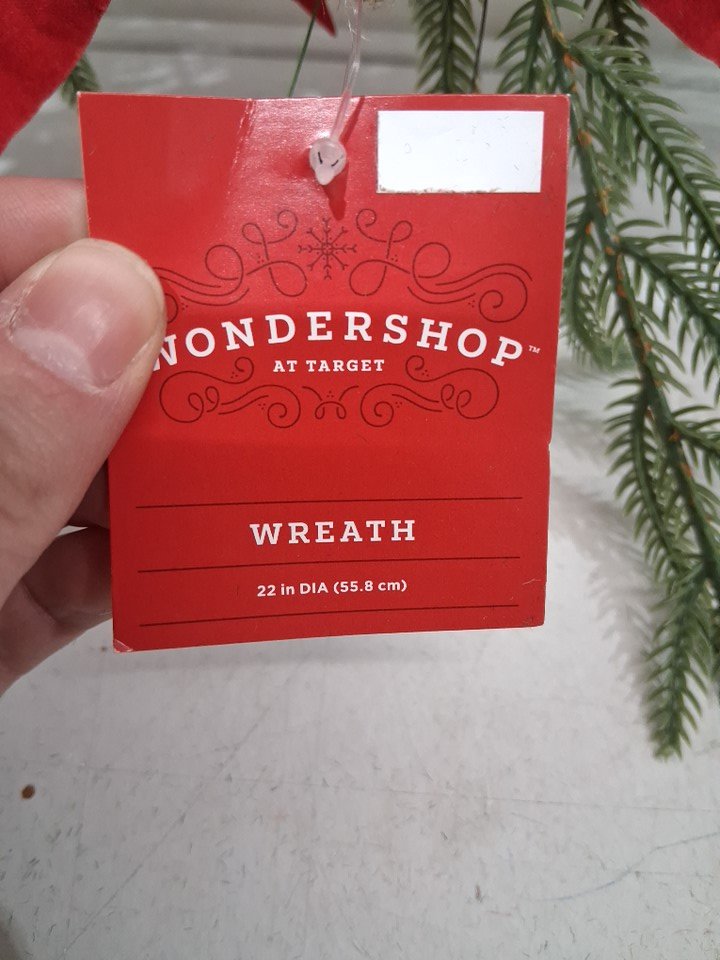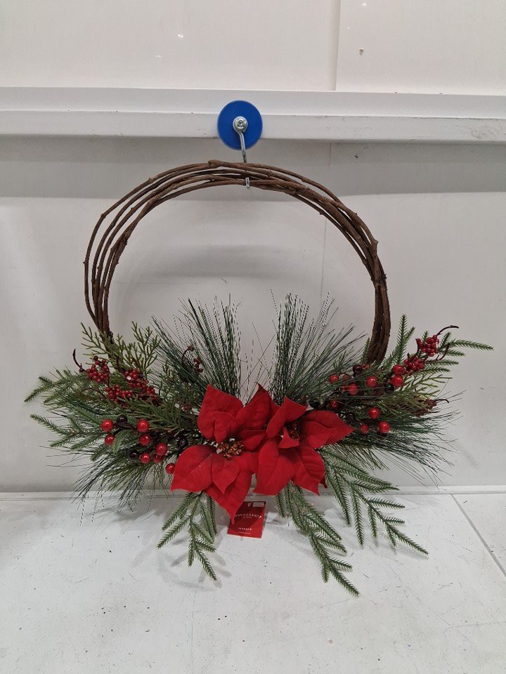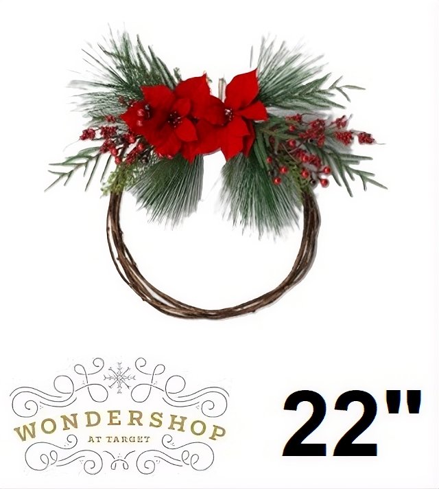 wondershop round twig greenery and poinsettias door christmas wreath - 22" round - green / red