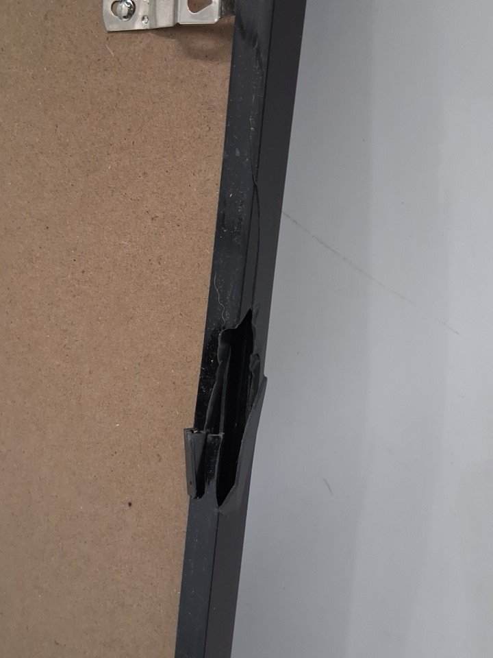 Item has a small crack on the left side of the frame which shouldn't affect the locking clips, see photos.