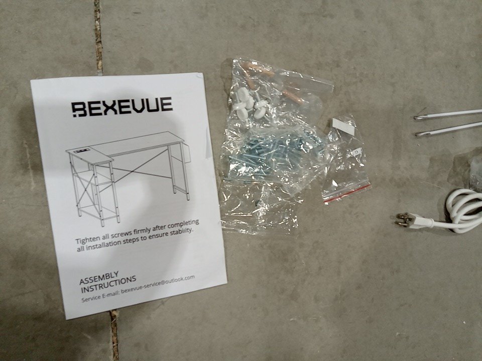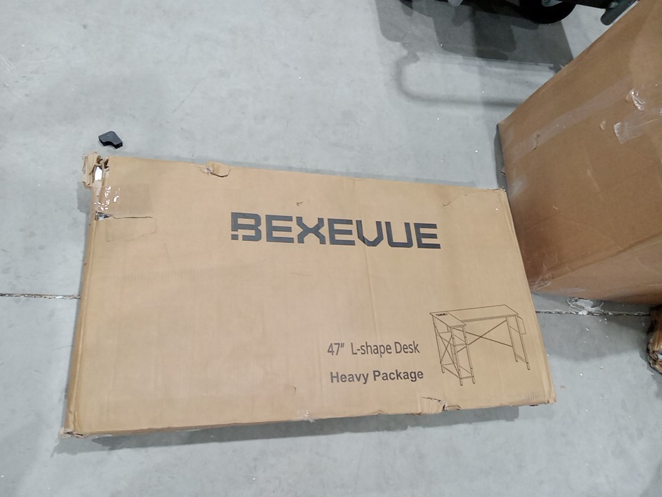 bexevue l-shaped computer desk with reversible shelves and power outlet - 47" - White - (model: 10002 047w)