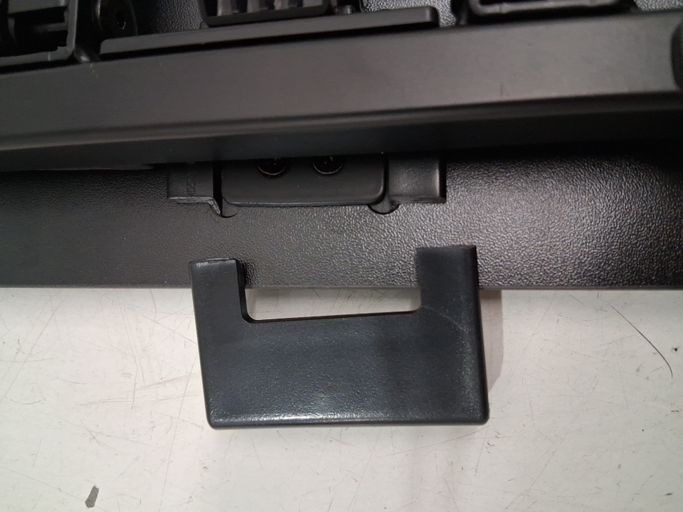Please note the button that you push in to raise/lower the stand has been broken off. It is still possible to push it in and raise/lower the tray by using something to push to remaining bit, see photos.