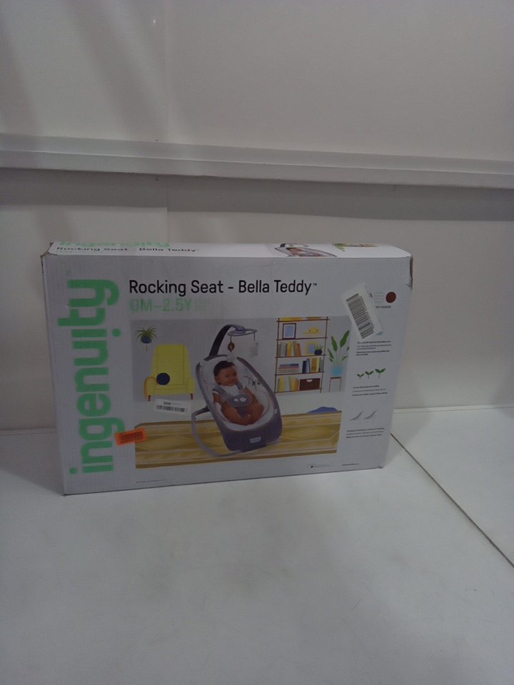 INGENUITY BOUTIQUE COLLECTION ROCKING SEAT Bella Teddy FOR BABY - 0 Months to 2.5 Years - WHITE/GREY (MODEL: 10986-EES)