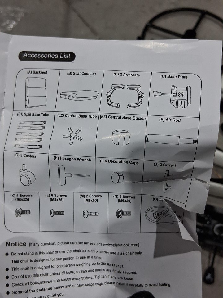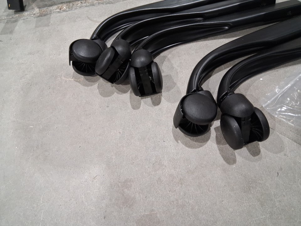 Wheels do not show much sign of use but chair has many parts that have been assembled Gast lift seems to be stuck at the maximum extension level, if needed a generic replacement can be purchased fairly easily