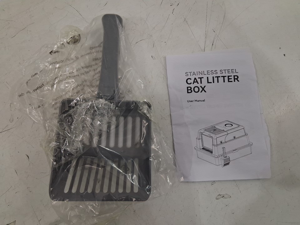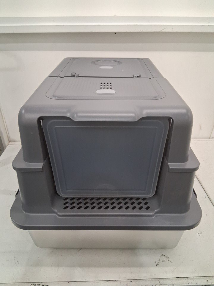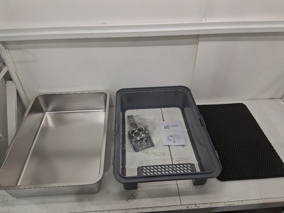 hihloy stainless steel cat litter box with mat and scoop for large or multiple cats - XXXL - 28" x 20.5" x 17" - GREY