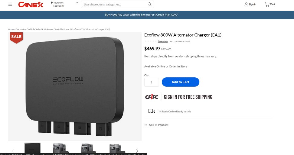 Ecoflow 3-IN-1 Alternator Charger - 800W - BLAcK (MODEL: EA1 499999507926)
