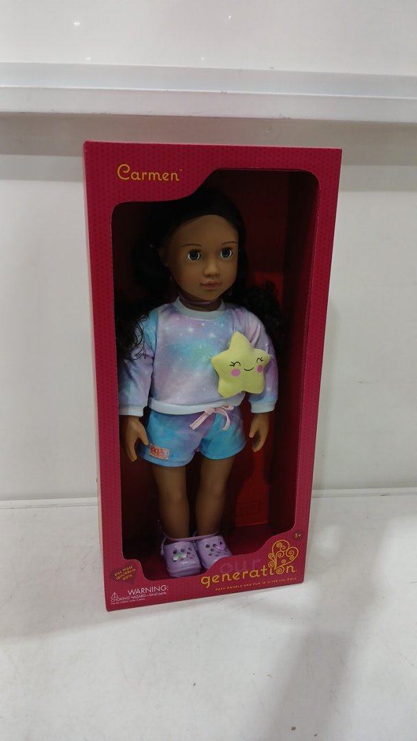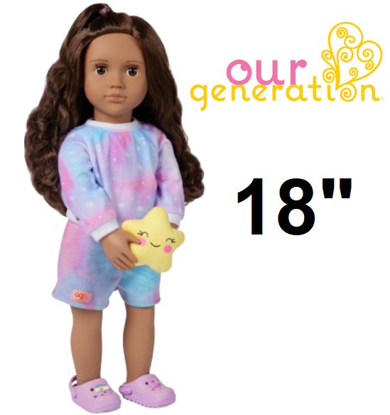 Our Generation Carmen Doll with Tie-Dye Pajama, Star Plush and Shoe Charms - 18"