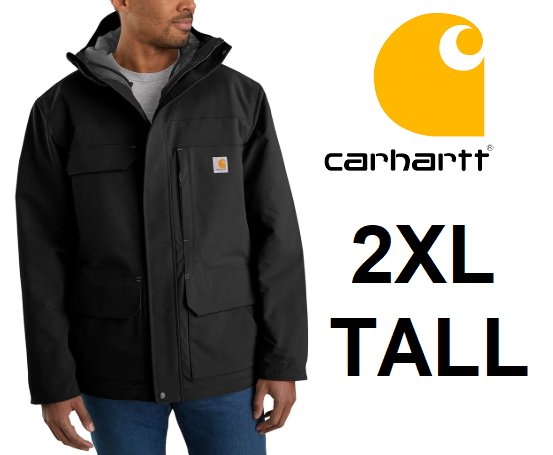 men's carhartt Super Dux Relaxed Fit Insulated Traditional Coat rain defender jacket - 2XL TALL - BLACK (model: 0c5002-m)