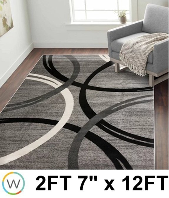 World Rug Gallery Toscana Collection - Modern Abstract Circles Runner Rug - 2FT 7" x 12FT - grey/grey (Design: 00377)