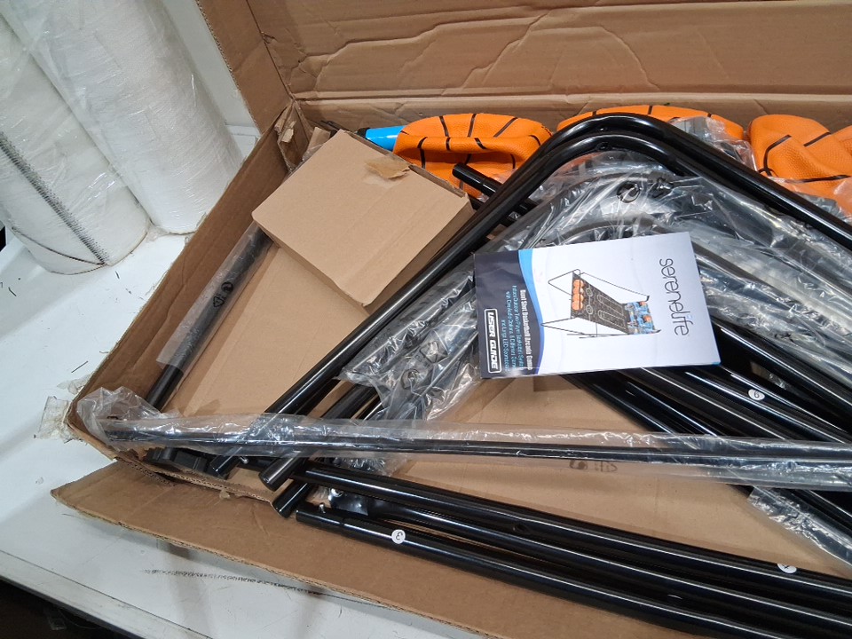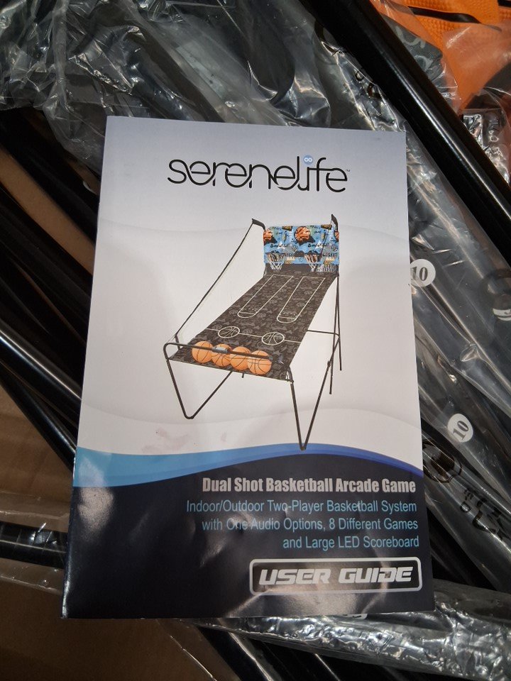 Serenelife Home Dual Hoop Basketball Shootout Indoor Home Arcade Room Game with Electronic LED Digital Double Basket Ball Shot Scoreboard & Play Timer Fold-up - black & blue & orange - (model:SLBSKBG90)