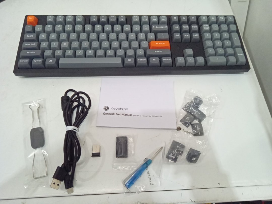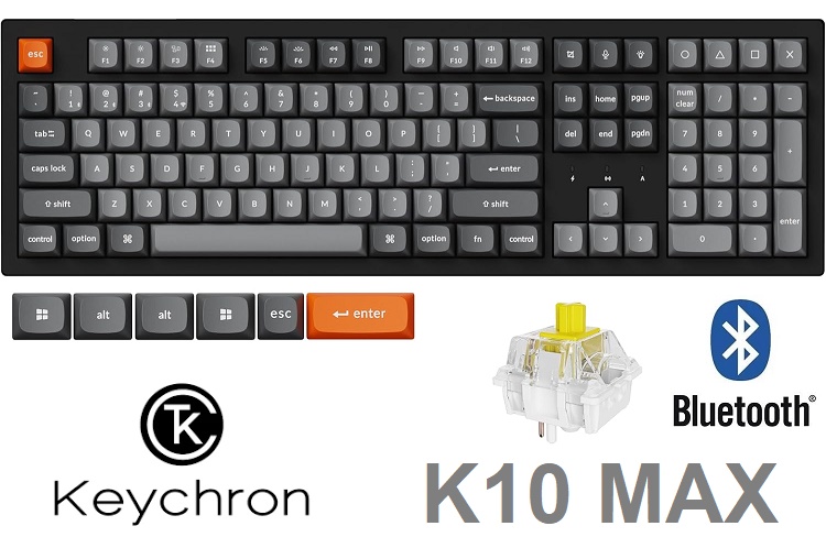 Keychron K10 Max Full Sized Bluetooth Wireless/Wired Keyboard with USB Receiver, White Backlight - Super Banana Tactile Switches - Grey/Orange (Model: K10M-A4)