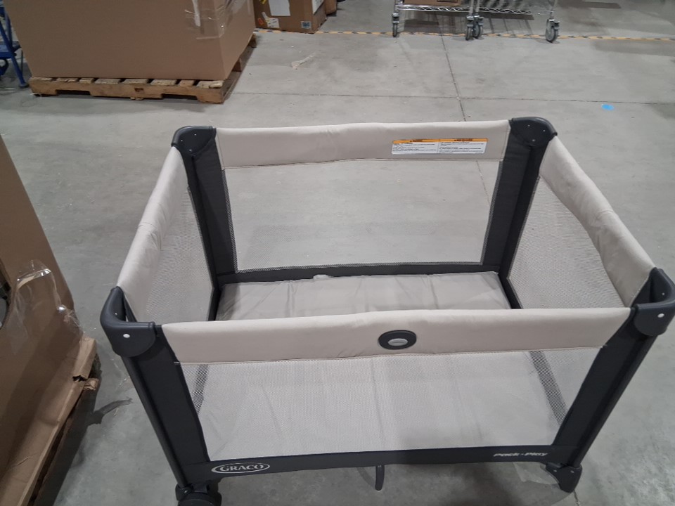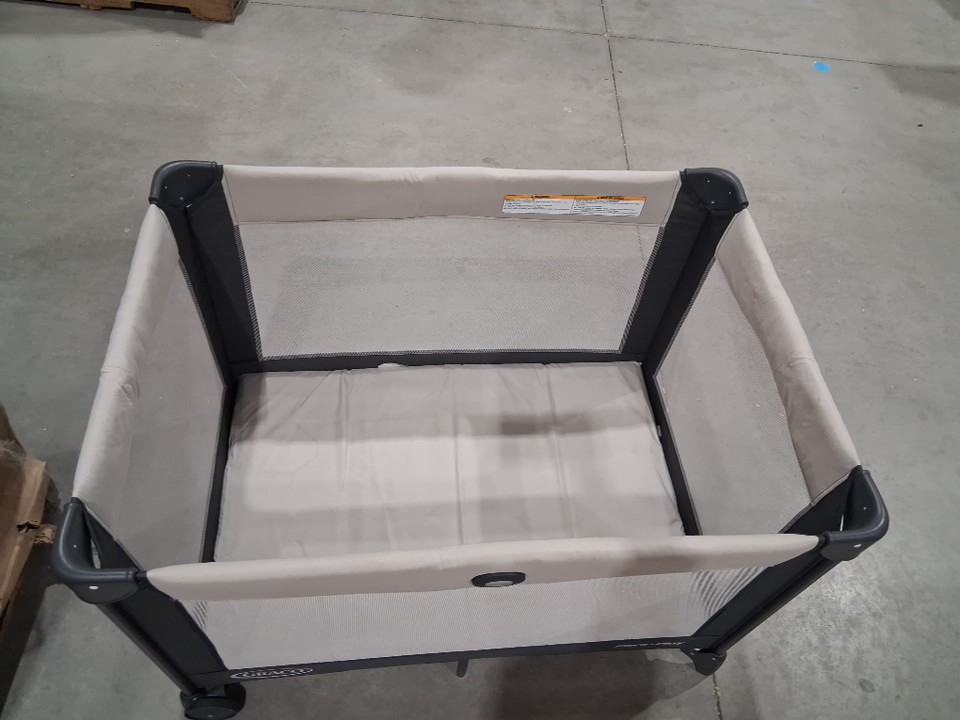 playard has visible dirt/dust on feet, and pad for bottom of pen has visible stains on it