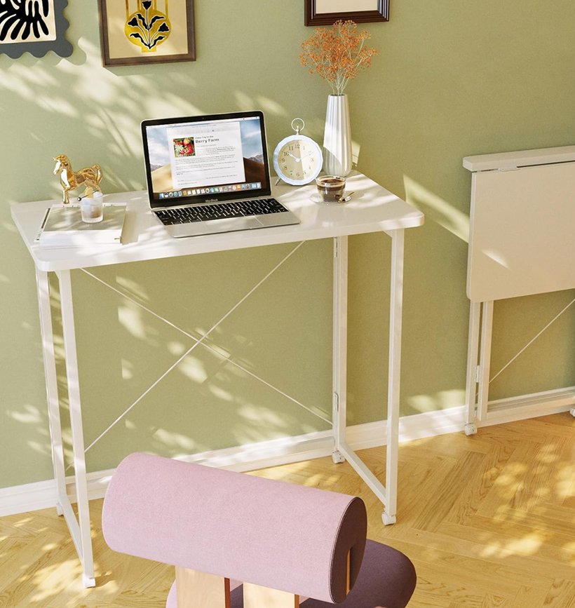 barlezy folding desk with wheels, space saving computer table - 31.5" x 15.7" x 30" - WHITE