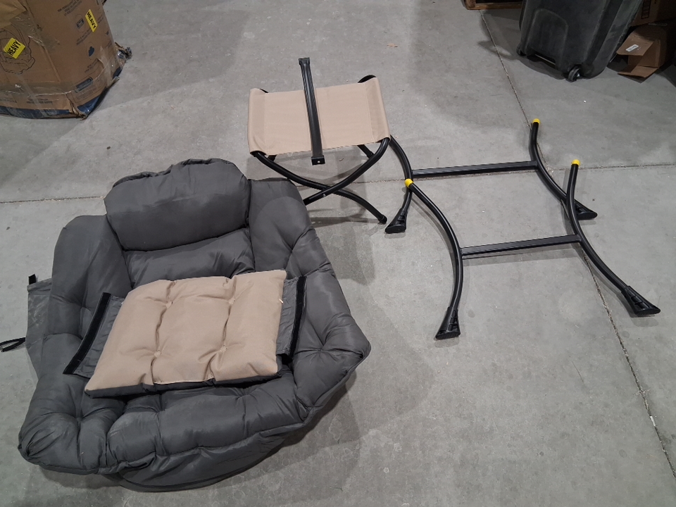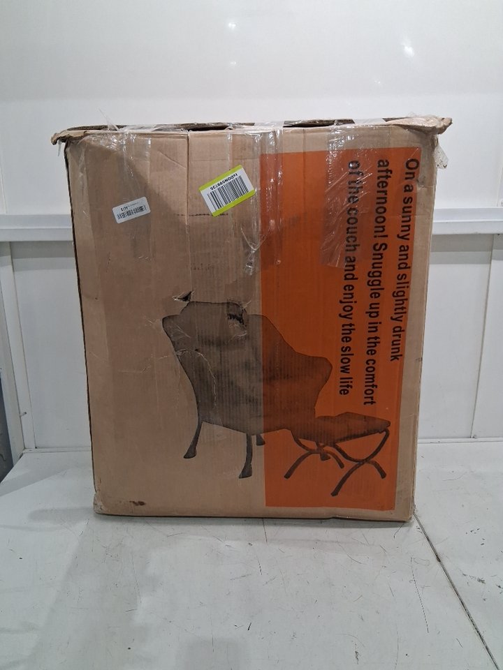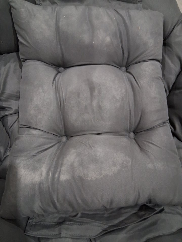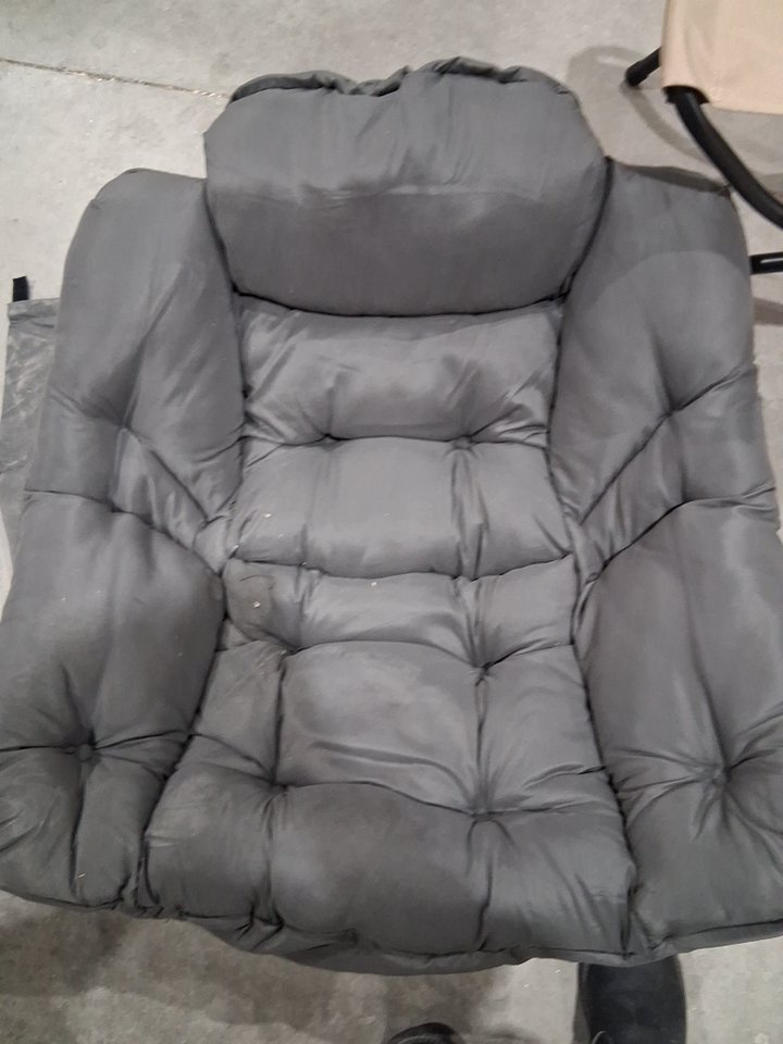 Please note the chair shows signs of previous use with dust around the seat and ottoman fabric, see photos.