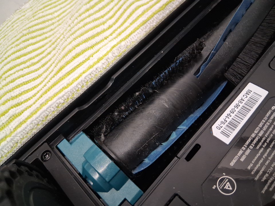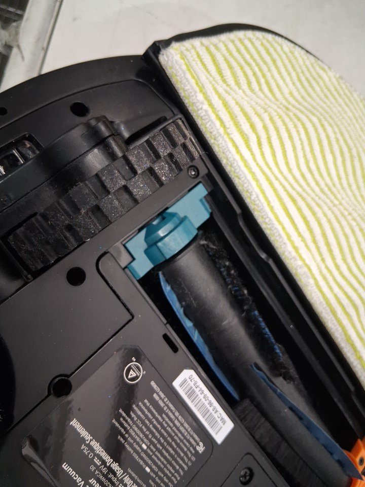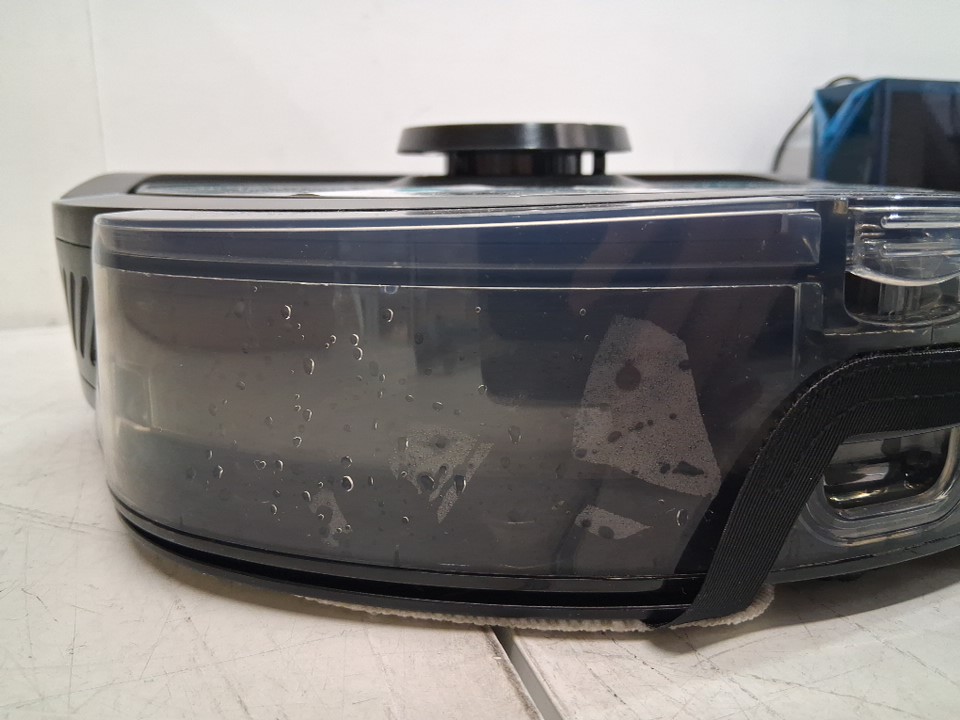 Dirt under wheels and vacuum from previous use, missing included cleaning solution. Tested for power