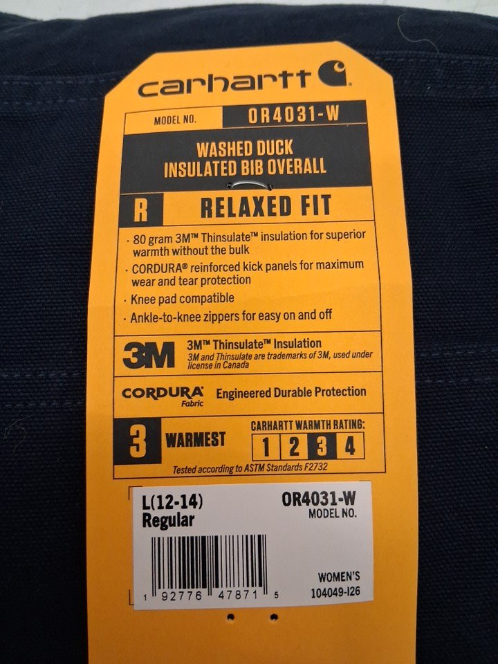 WOMEN'S CARHARTT Quilt Lined Washed Duck Bib Overall - large relaxed fit - navy blue - (MODEL 0R4031-W)