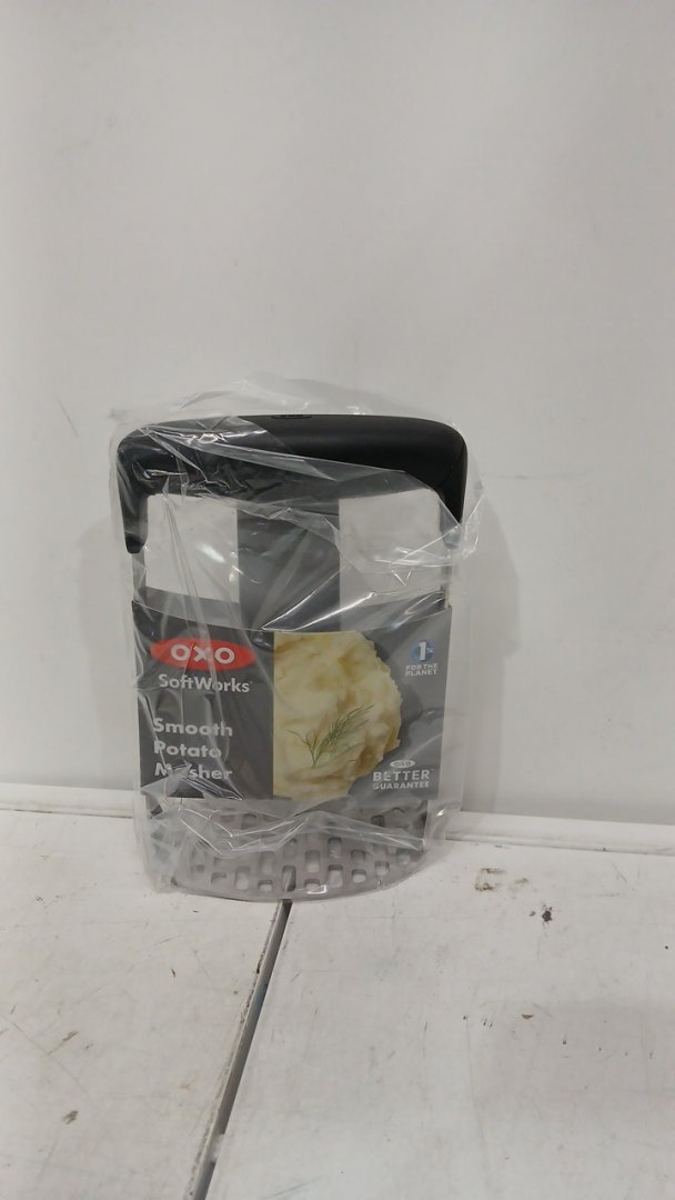 oxo good grips smooth potato masher kitchen tool - black/stainless steel