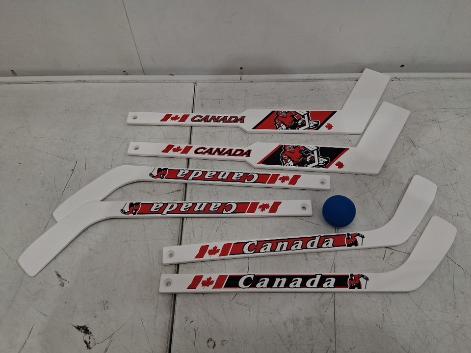 7PC CANADA RED MINI-HOCKEY STICK SET with 6 STICKS AND A BALL - WHITE/BLACK/red