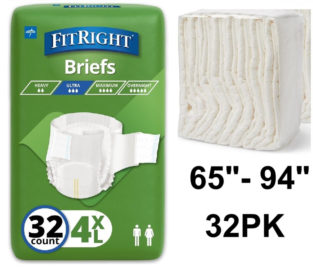 32 PK MEDLINE FitRight Cloth-Like Bariatric Briefs - 4XL - 65" -94" - WHHITE