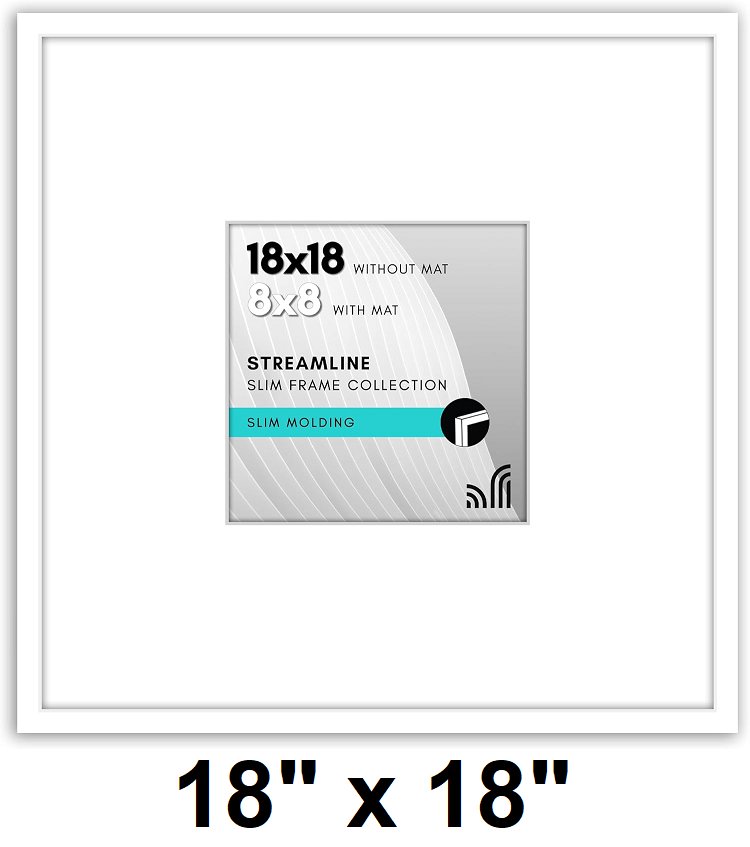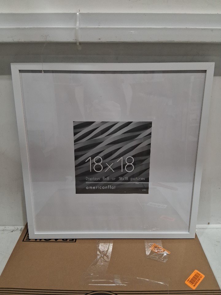 AmericanFlat Picture Frame with Polished Plexiglass - 18" x 18" / 8" x 8" WITH MAT - white