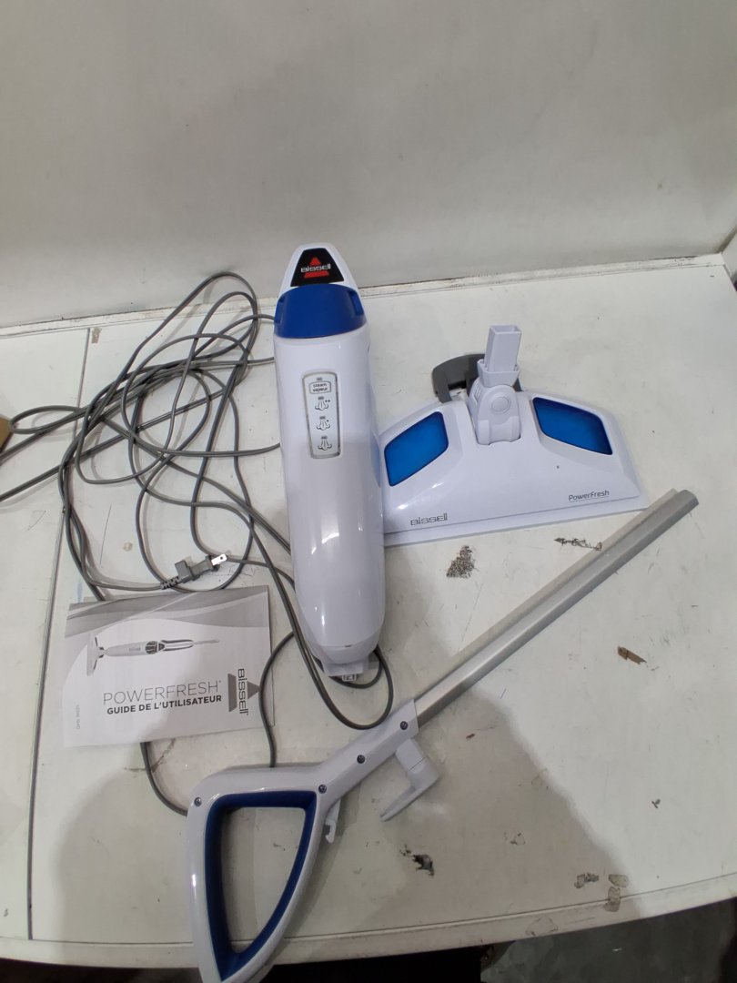 Missing mop heads and residue/marks suggests prior use. Tested for power.