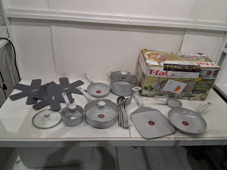Please note that this is supposed to be a 20-piece set, but the 3qt covered saute pan is not included. There are some scratches on some of the pots/pans and some kind of faint residue in some of them indicating previous handling/use (see photos)