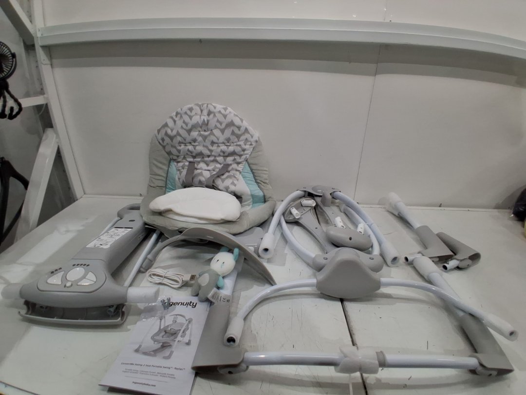 INGENUITY ConvertMe 2-in-1 compact portable plug-in automatic baby swing - 6lbs to 20lbs - grey - (model: 12189-es)