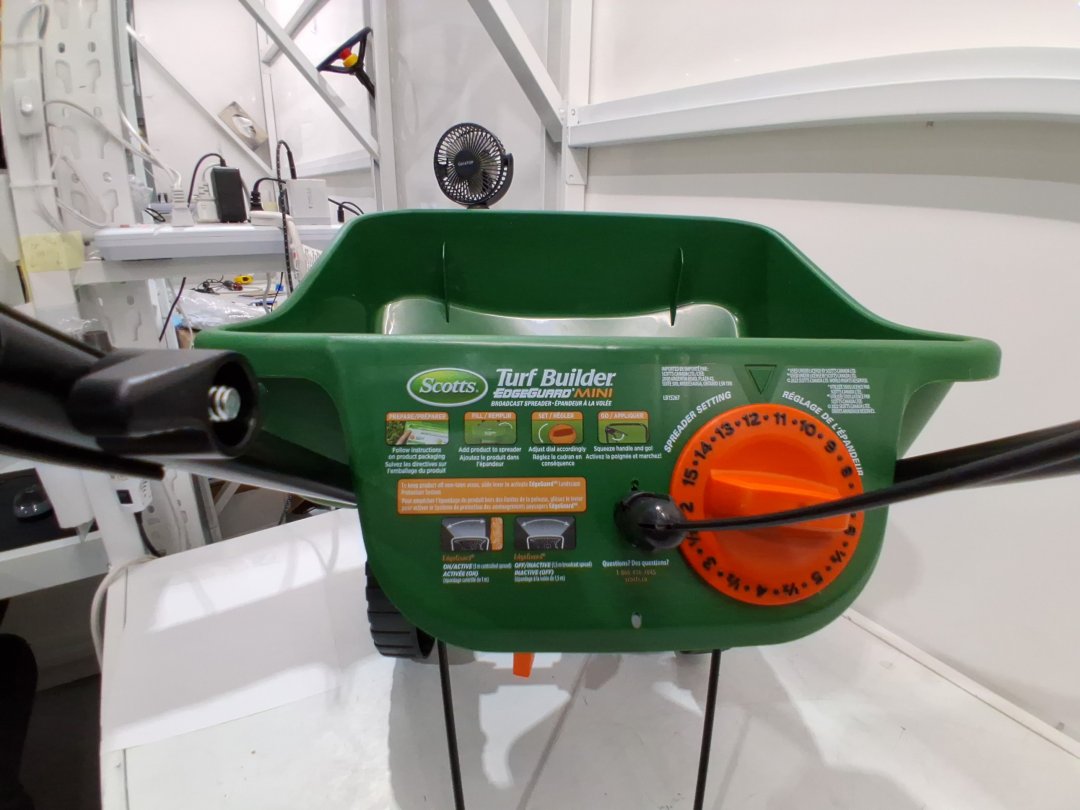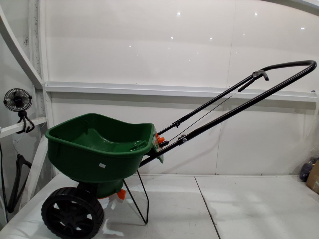 scotts foldable turf builder, edgeguard mini broadcast spreader/seeder - 5000 sq ft - green/black (model: lb15267)