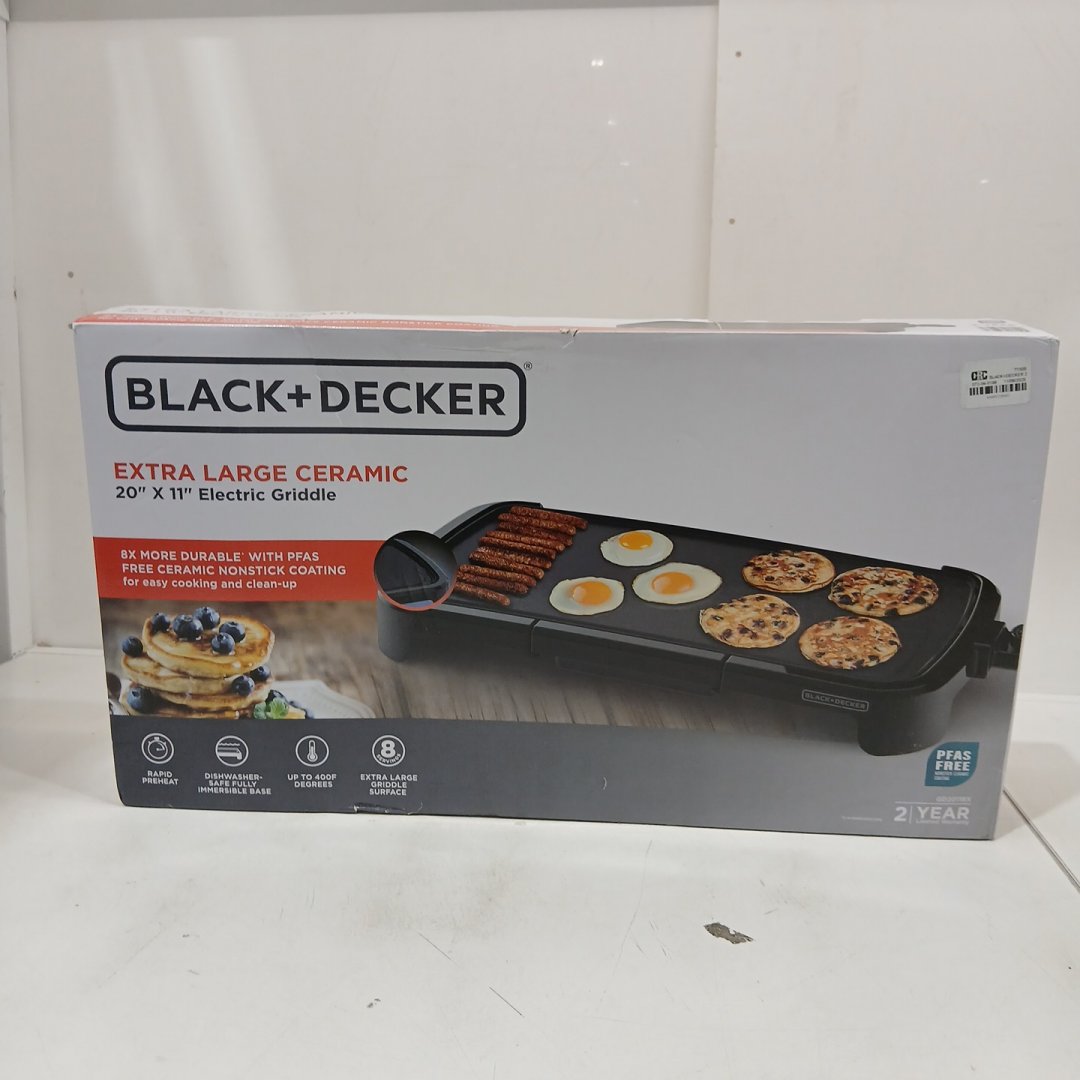 black + decker XL Family Size corded electric griddle with Rapid Preheat - 20" x 11" - black (model: gd2011bx)