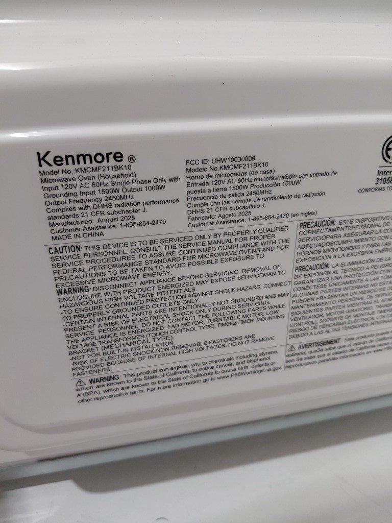 Kenmore countertop Microwave - 1.1 cu ft - black (model: kmcmf211bk10)