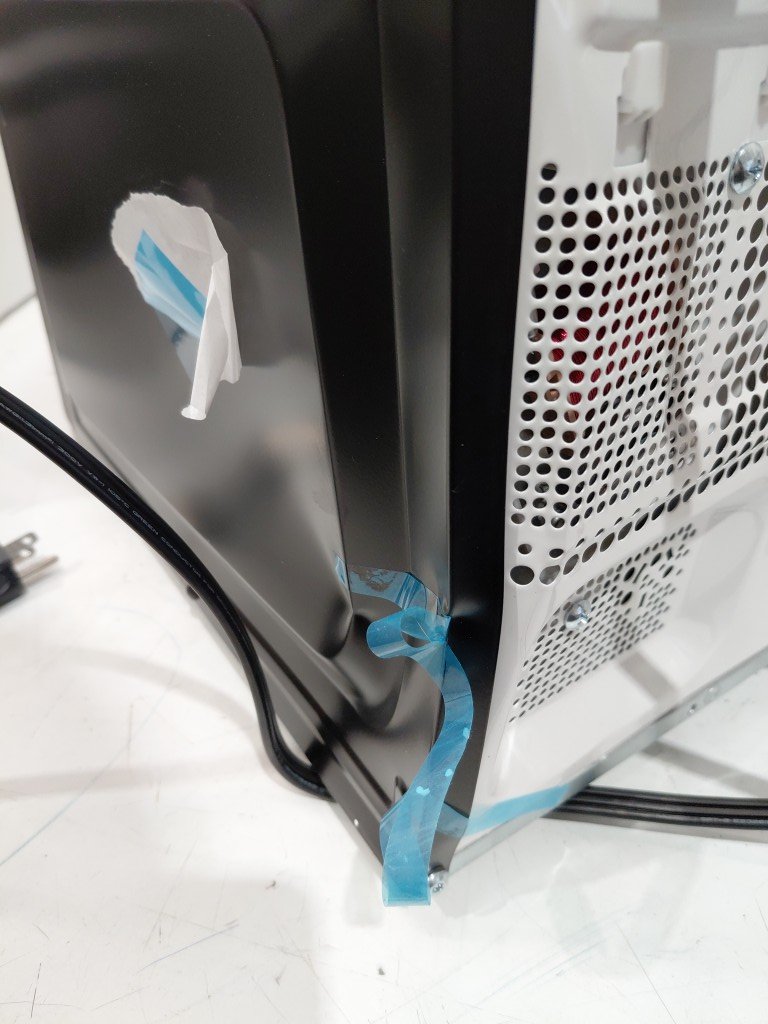 Item has a dent on the back corner, doesn't affect use of item (see photos)